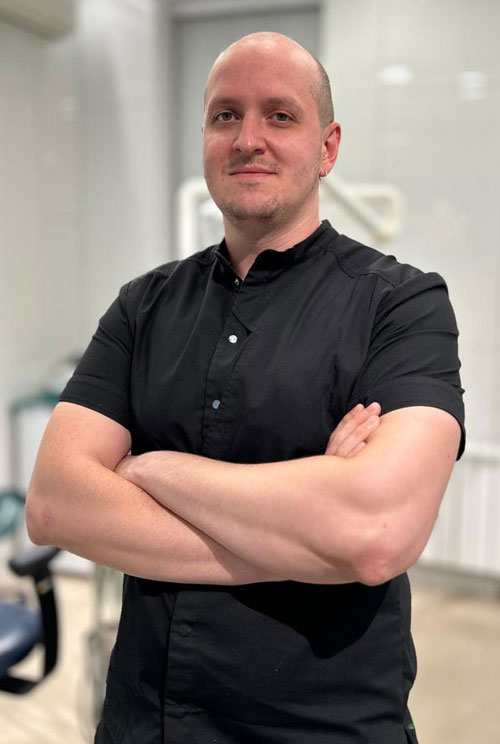 Выпускник Харьковского национального медицинского университета (2016) по специальности стоматология. Прошел ординатуру и повышение квалификации в области хирургической стоматологии в Харькове. Опыт работы более 7 лет, специализируется на сложных хирургических вмешательствах и имплантации с индивидуальным подходом к пациенту.